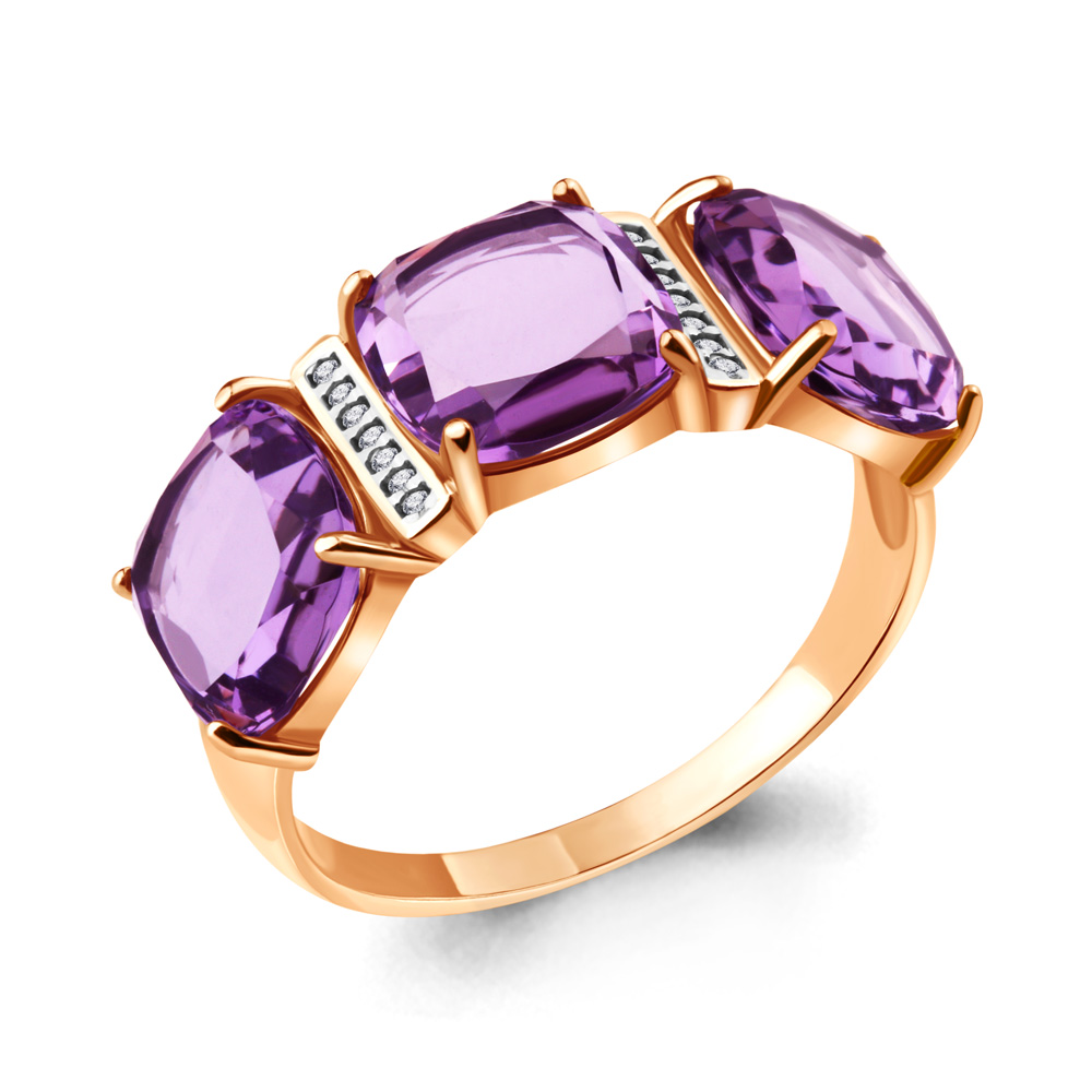 6547404А Кольцо из Серебра с аметистами, фианитами