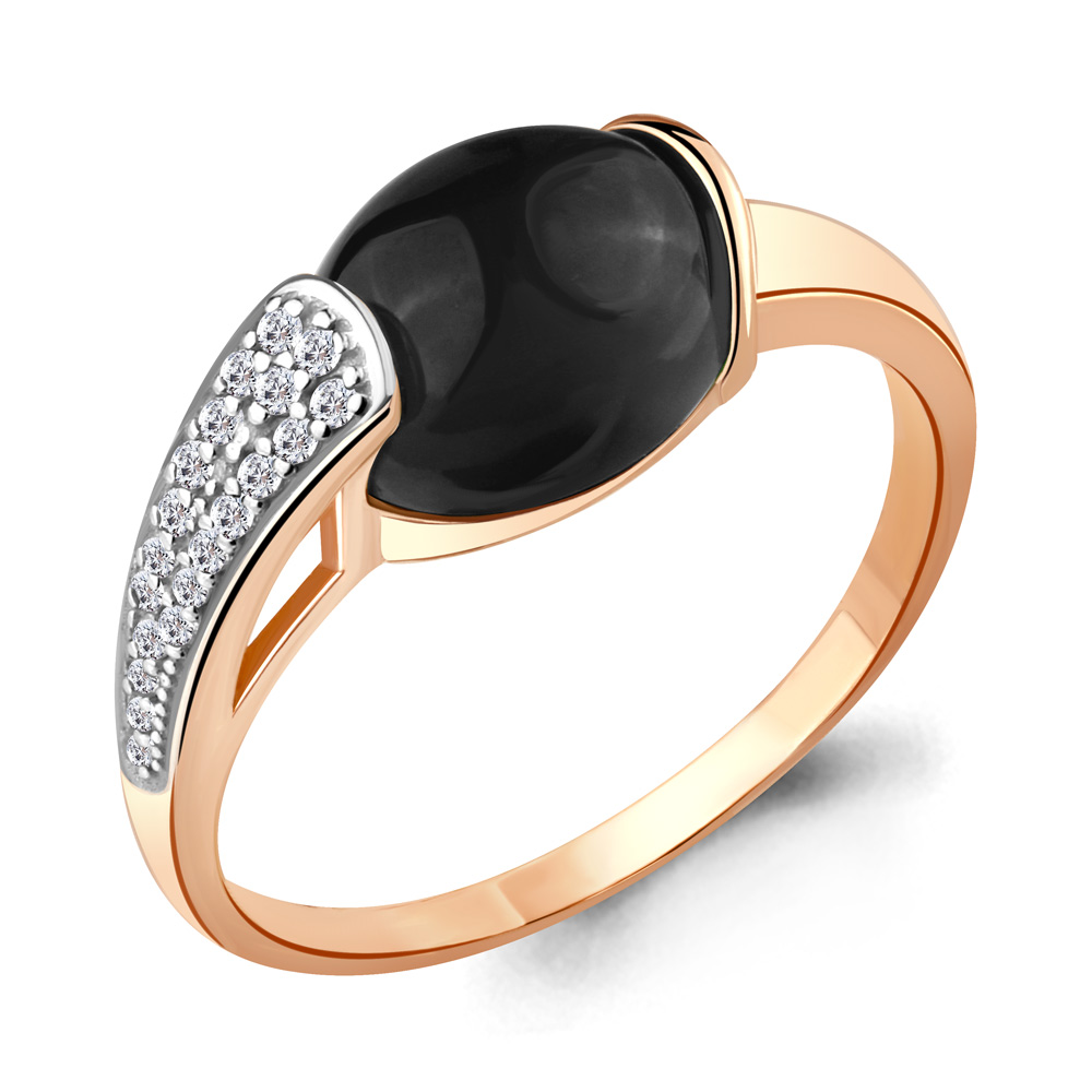 6551517А Кольцо из Серебра с ониксом, фианитами