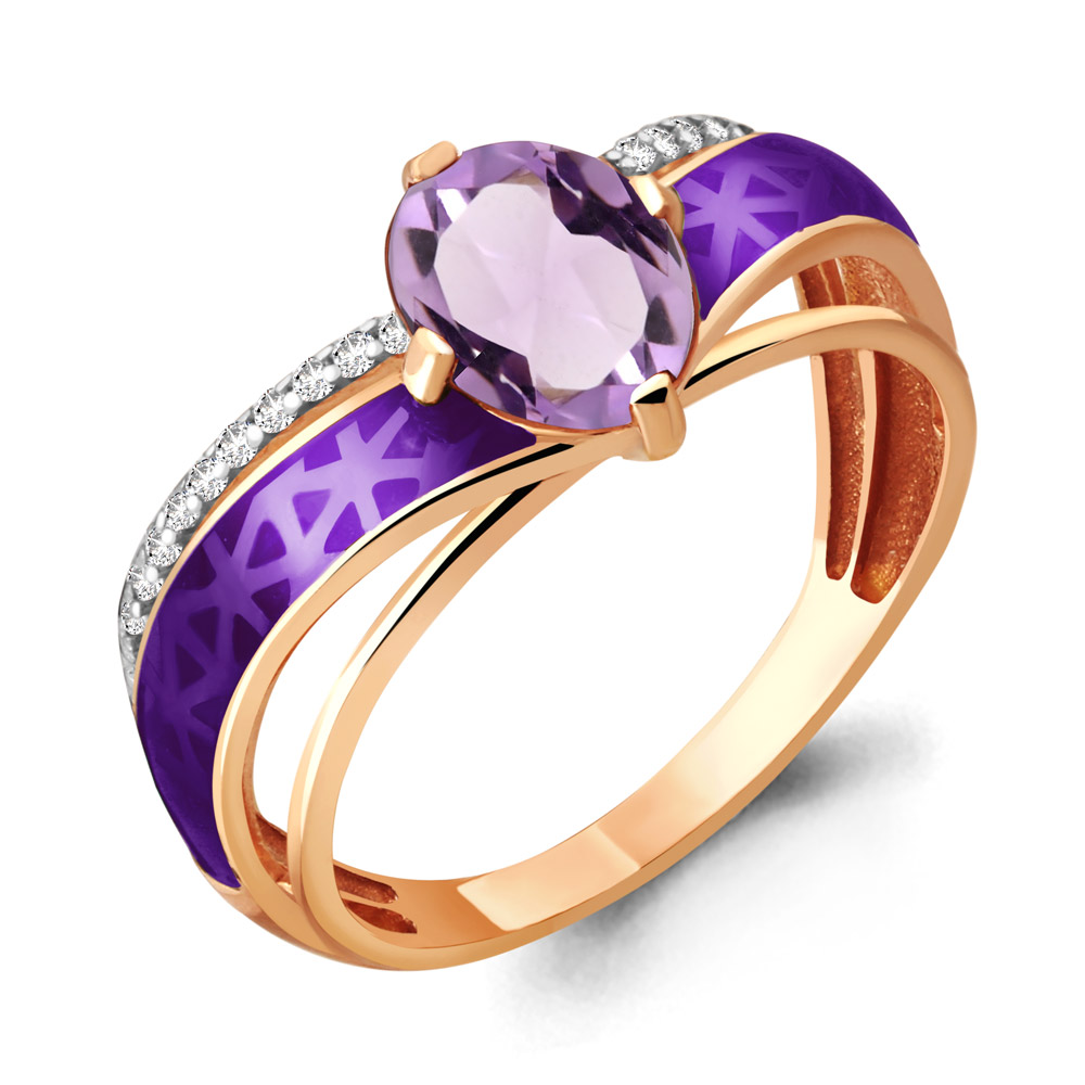 6566204А Кольцо из Серебра с аметистом, фианитами, эмалью из коллекции "Rio"