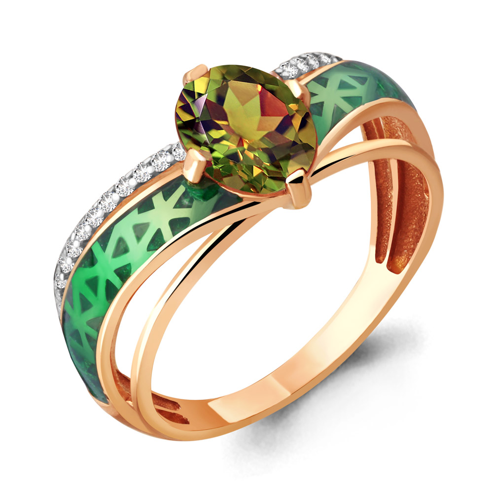 6566219А Кольцо из Серебра с султанитом иск., фианитами, эмалью из коллекции "Rio"
