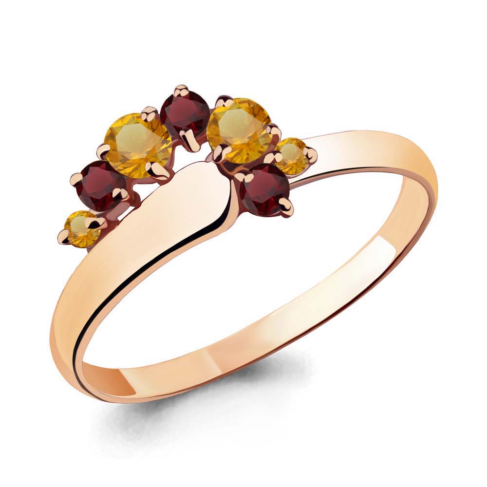 6567734 Кольцо из Серебра с гранатами, цитринами из коллекции "Аура"
