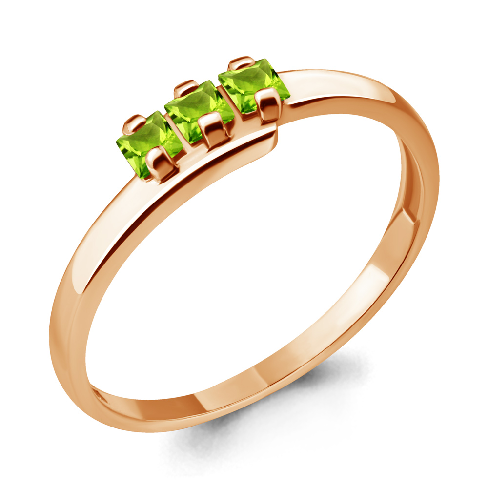 6569007 Кольцо из Серебра с хризолитами из коллекции "Аура"