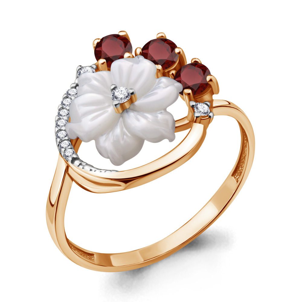 6570703А Кольцо из Серебра с гранатами, поделочным камнем, фианитами из коллекции "Жозефина"