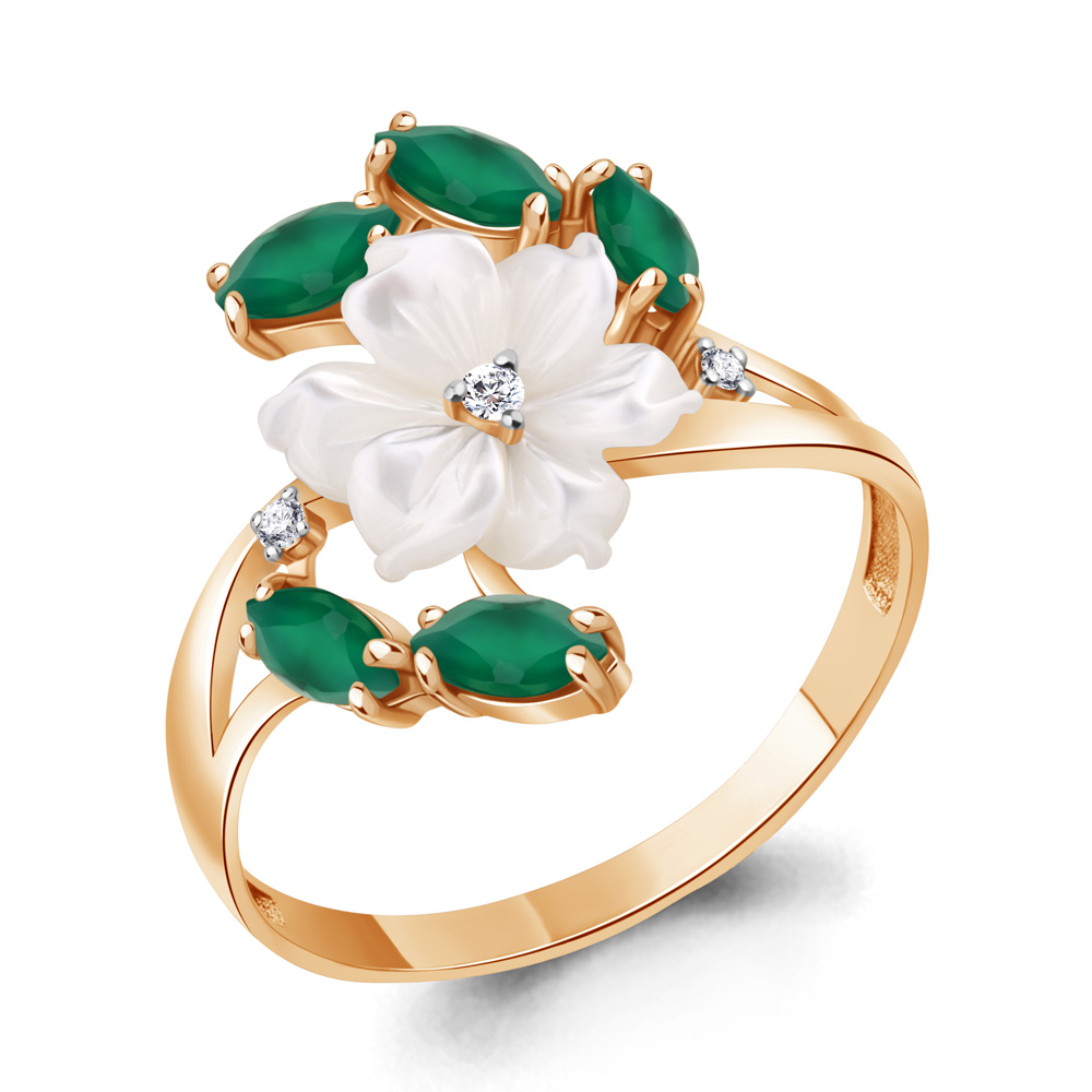 6571109 Кольцо из Серебра с агатами, поделочным камнем, фианитами