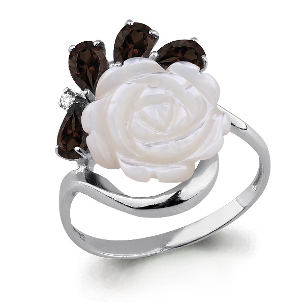 6571201 Кольцо из Серебра с кварцами дымчатыми, поделочным камнем, фианитами