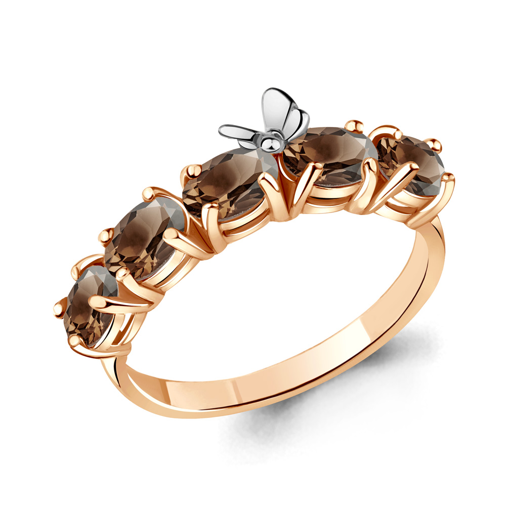 6571701 Кольцо из Серебра с кварцами дымчатыми