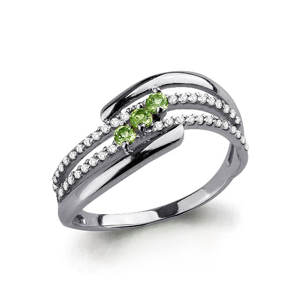 6573507А Кольцо из Серебра с фианитами, хризолитами