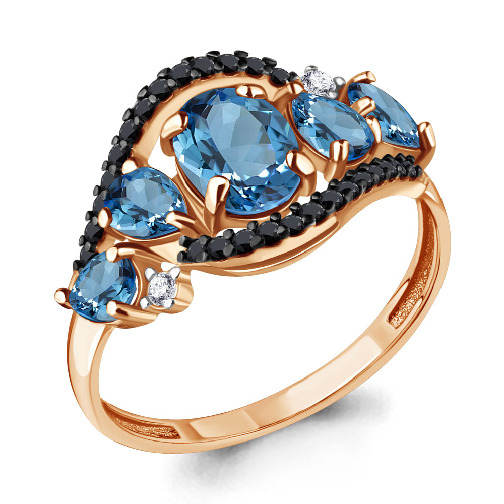 6574505Ч Кольцо из Серебра с нанокристаллами, топазами свисс блю, фианитами из коллекции "Gothic"