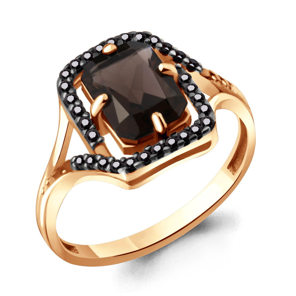 6575101Ч Кольцо из Серебра с кварцем дымчатым, нанокристаллами из коллекции "Gothic"