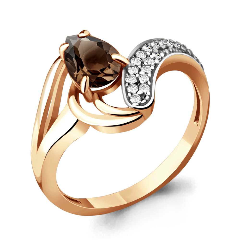 6575401А Кольцо из Серебра с кварцем дымчатым, фианитами