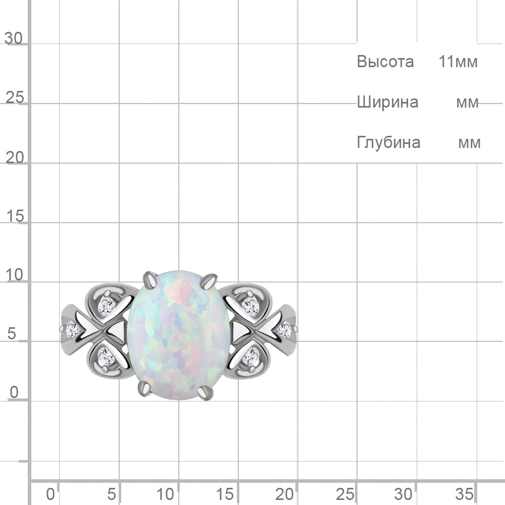 6577198А Кольцо из Серебра с опалом иск., фианитами