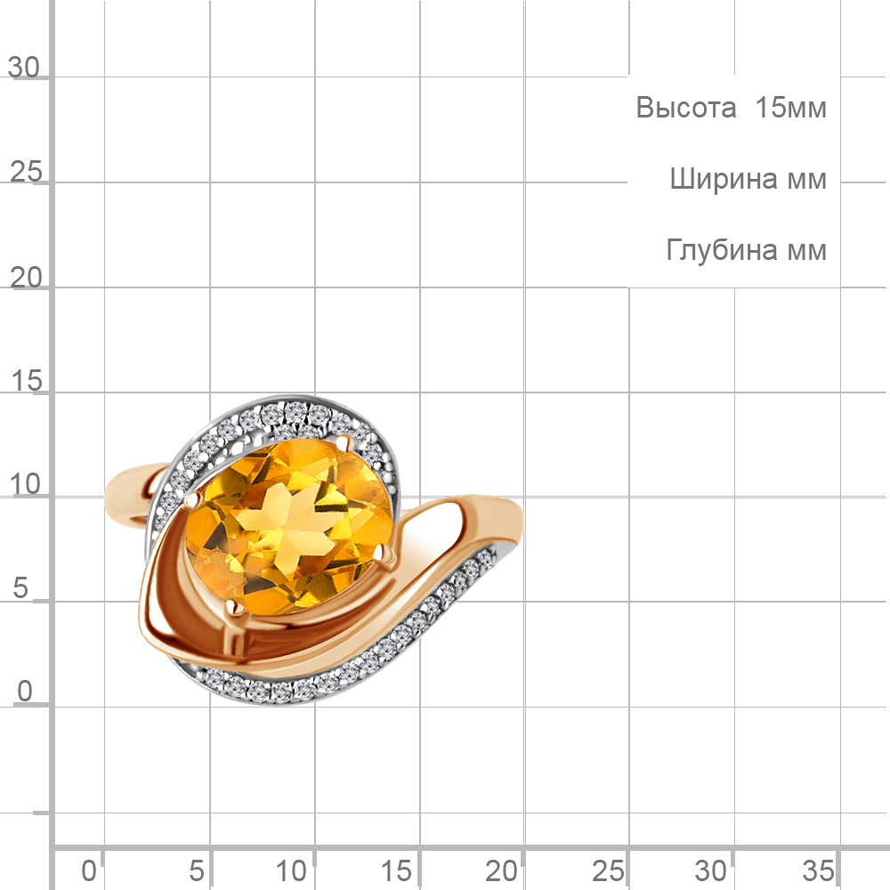 6579006А Кольцо из Серебра с фианитами, цитрином