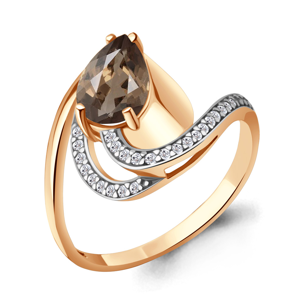 6579101А Кольцо из Серебра с кварцем дымчатым, фианитами