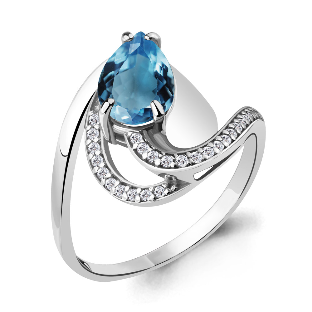 6579108А Кольцо из Серебра с топазом лондон блю, фианитами