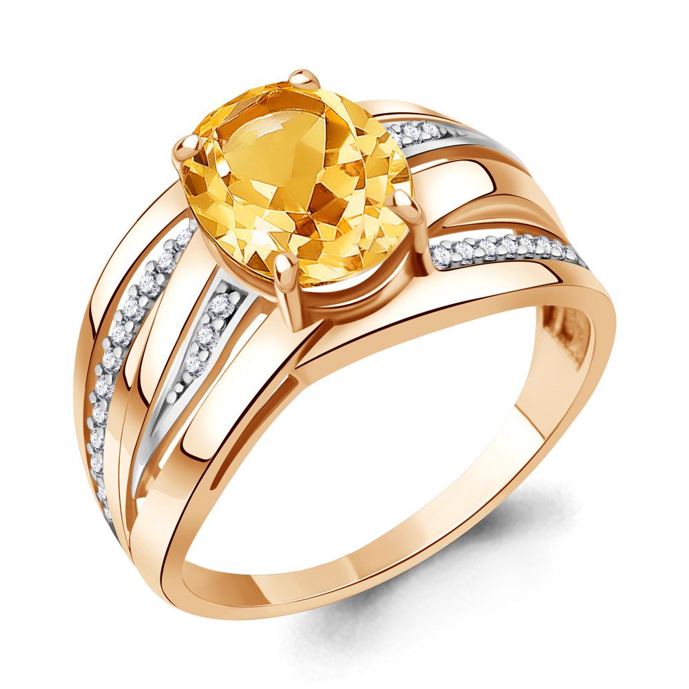 6579206А Кольцо из Серебра с фианитами, цитрином