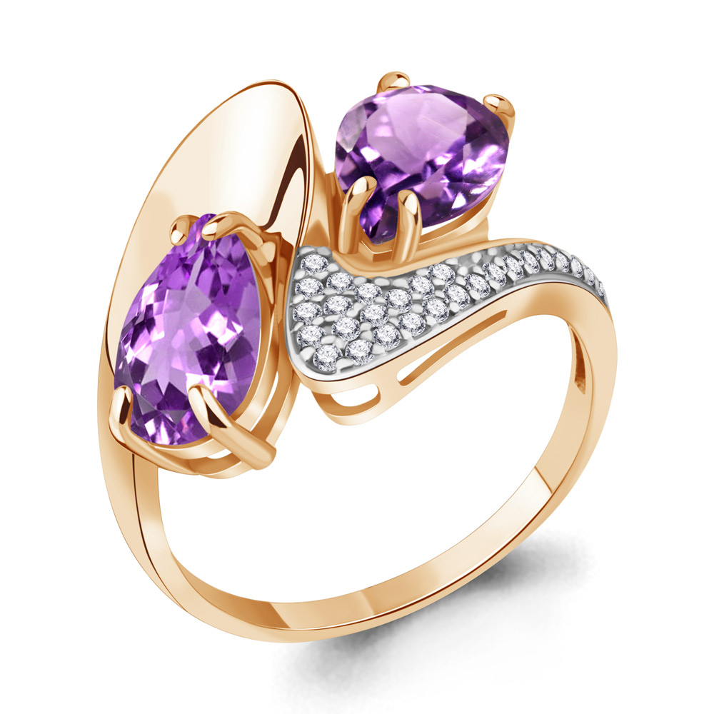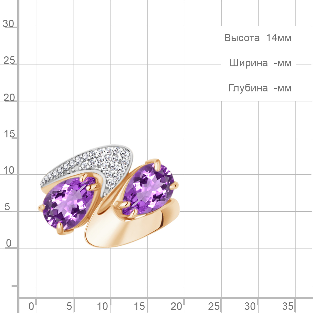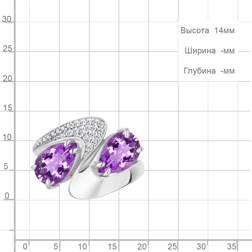 6579404А Кольцо из Серебра с аметистами, фианитами