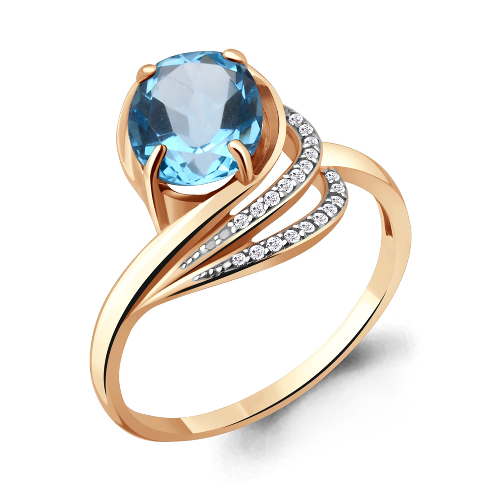 6579505А Кольцо из Серебра с топазом свисс блю, фианитами