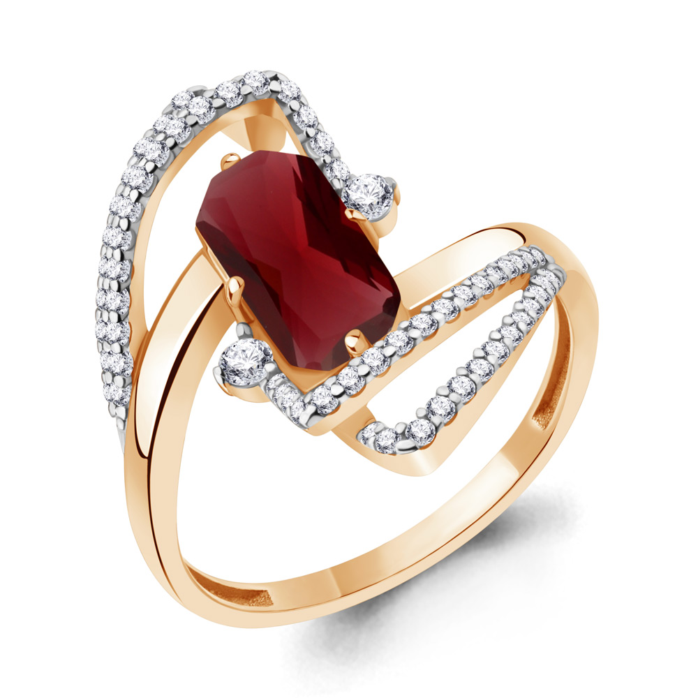 6579785А Кольцо из Серебра с наногранатом, фианитами из коллекции "Каприз"