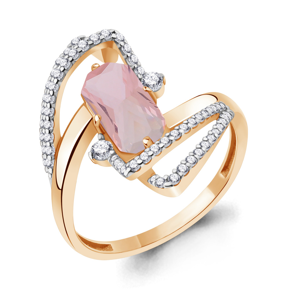 6579790А Кольцо из Серебра с наноморганитом, фианитами из коллекции "Каприз"