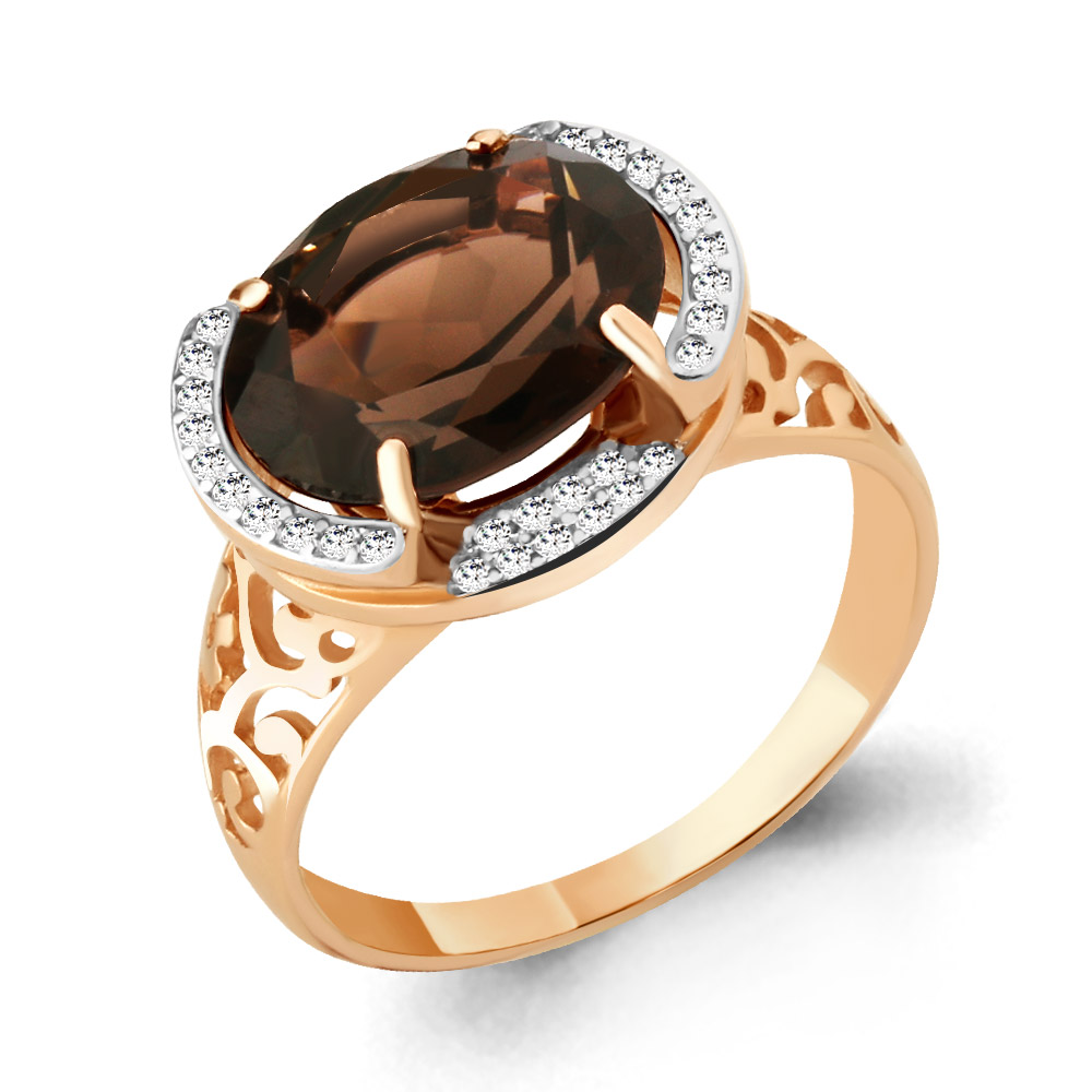 6580001А Кольцо из Серебра с кварцем дымчатым, фианитами
