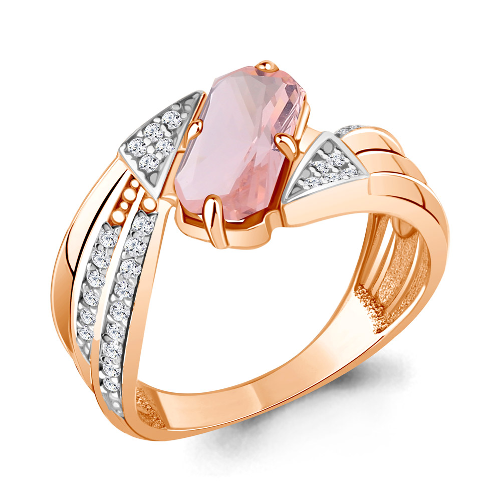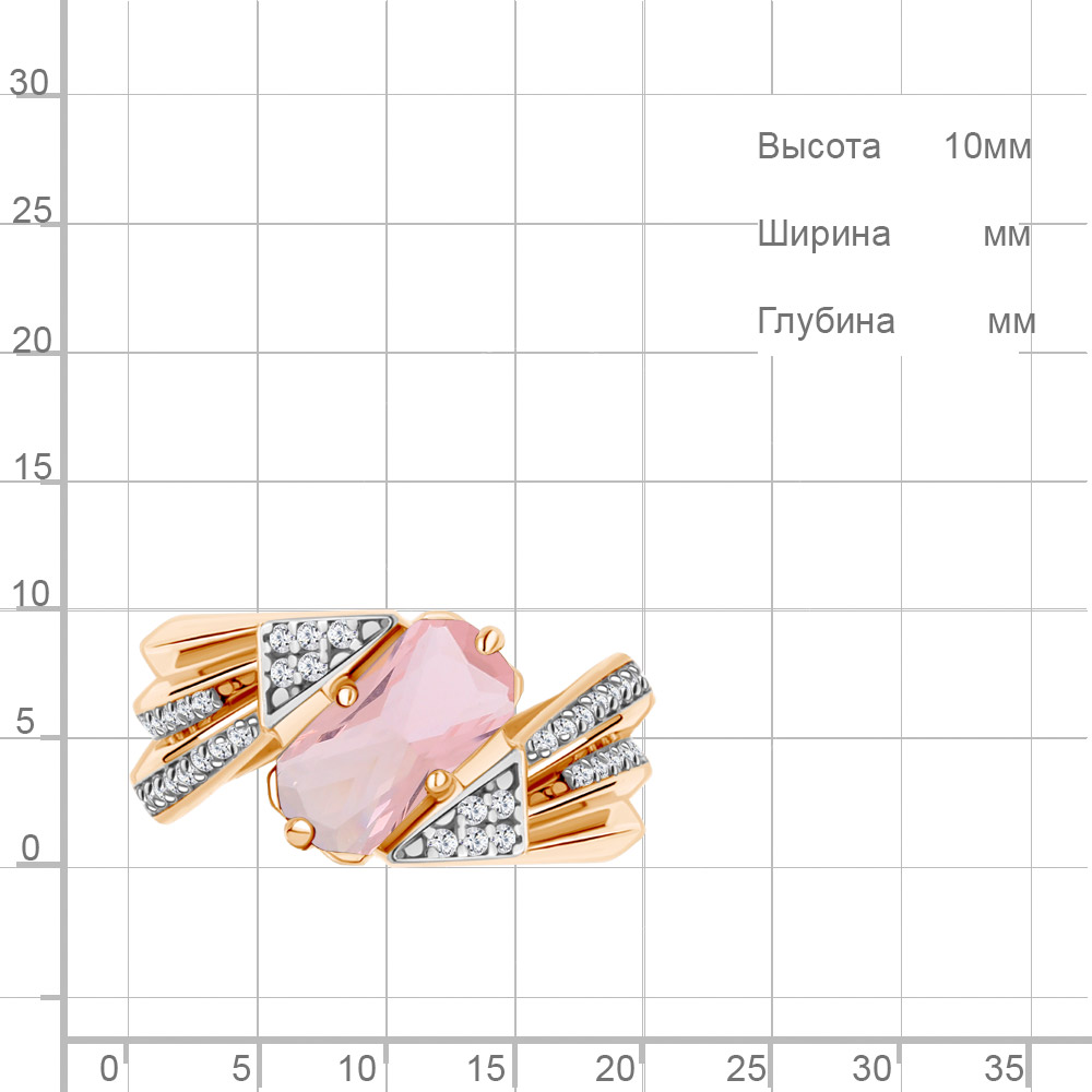 6580290А Кольцо из Серебра с наноморганитом, фианитами из коллекции "Каприз"