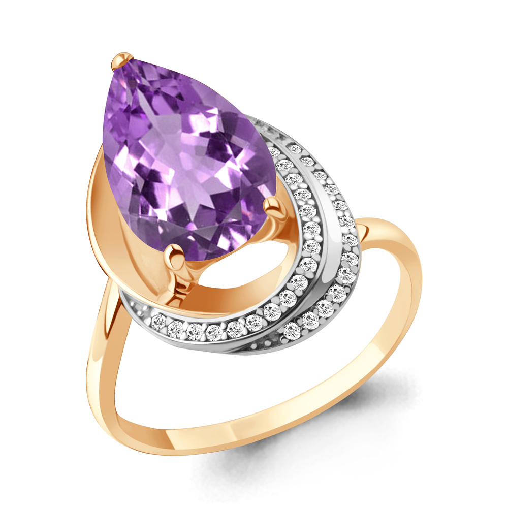 6580304А Кольцо из Серебра с аметистом, фианитами