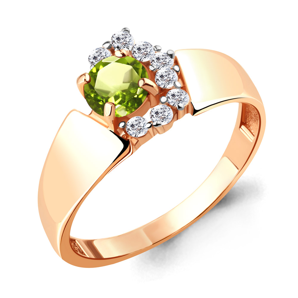 6581007А Кольцо из Серебра с фианитами, хризолитом