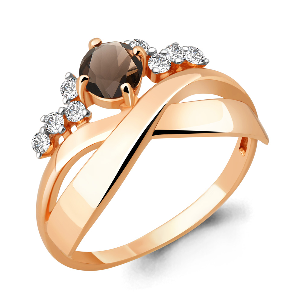 6581301А Кольцо из Серебра с кварцем дымчатым, фианитами