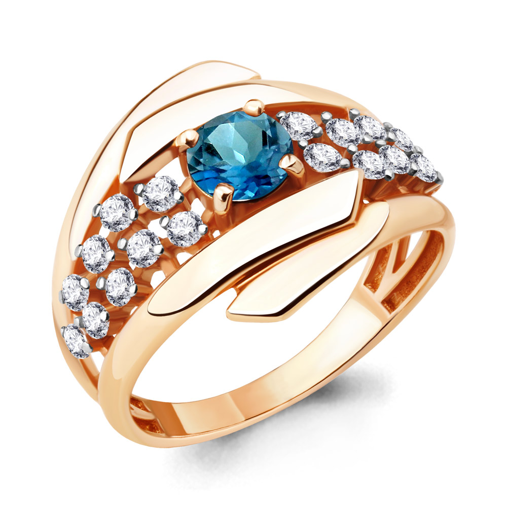 6583508А Кольцо из Серебра с топазом лондон блю, фианитами