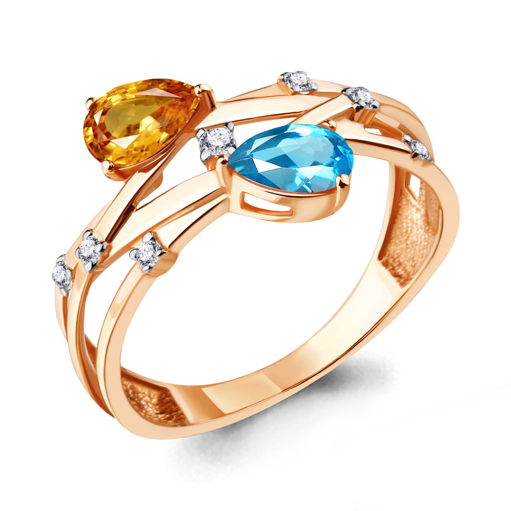 65856534А Кольцо из Серебра с топазом голубым, топазом медовым, фианитами из коллекции "Гипноз"