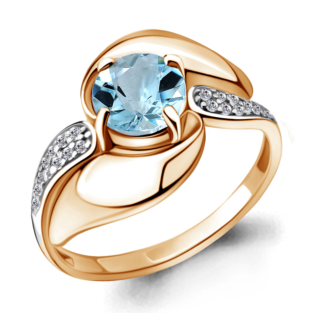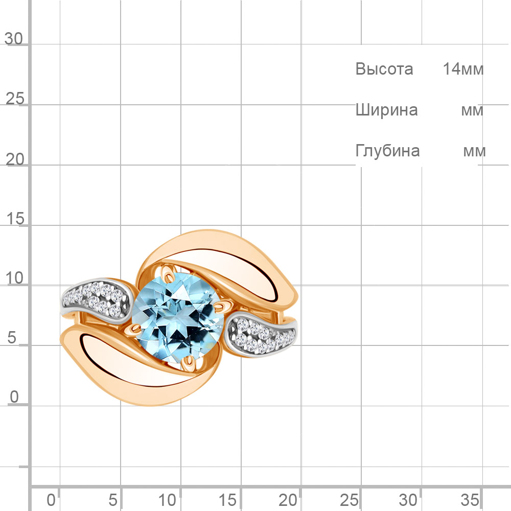 6587102А Кольцо из Серебра с топазом скай блю, фианитами
