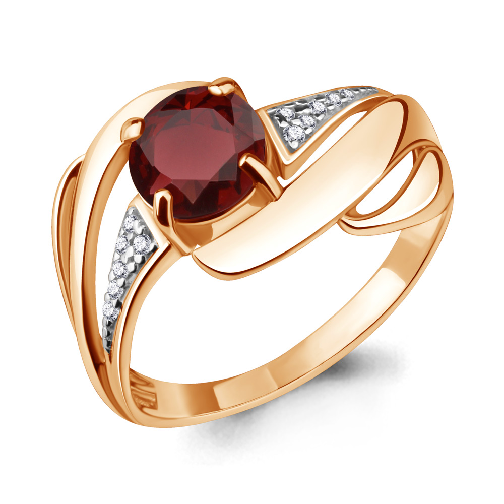 6587203А Кольцо из Серебра с гранатом, фианитами