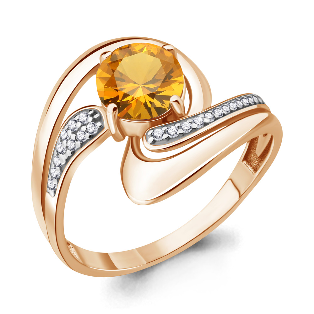 6587306А Кольцо из Серебра с фианитами, цитрином
