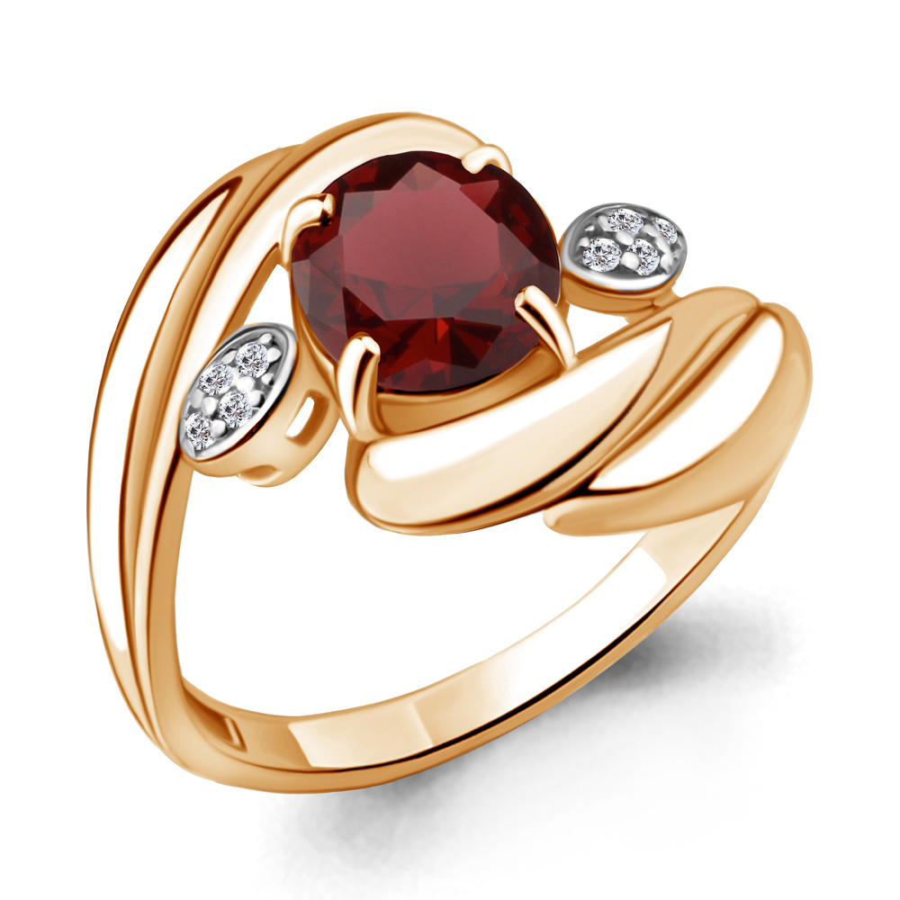 6587603А Кольцо из Серебра с гранатом, фианитами
