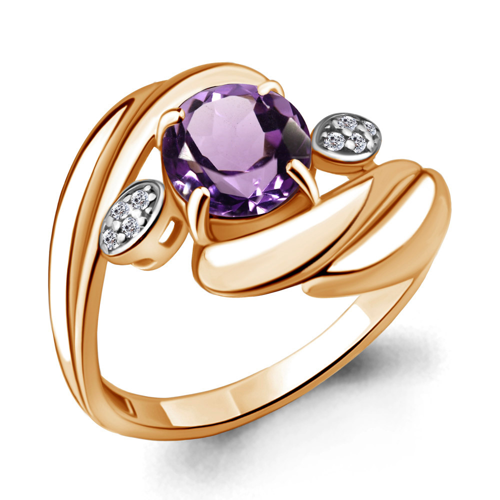 6587604А Кольцо из Серебра с аметистом, фианитами