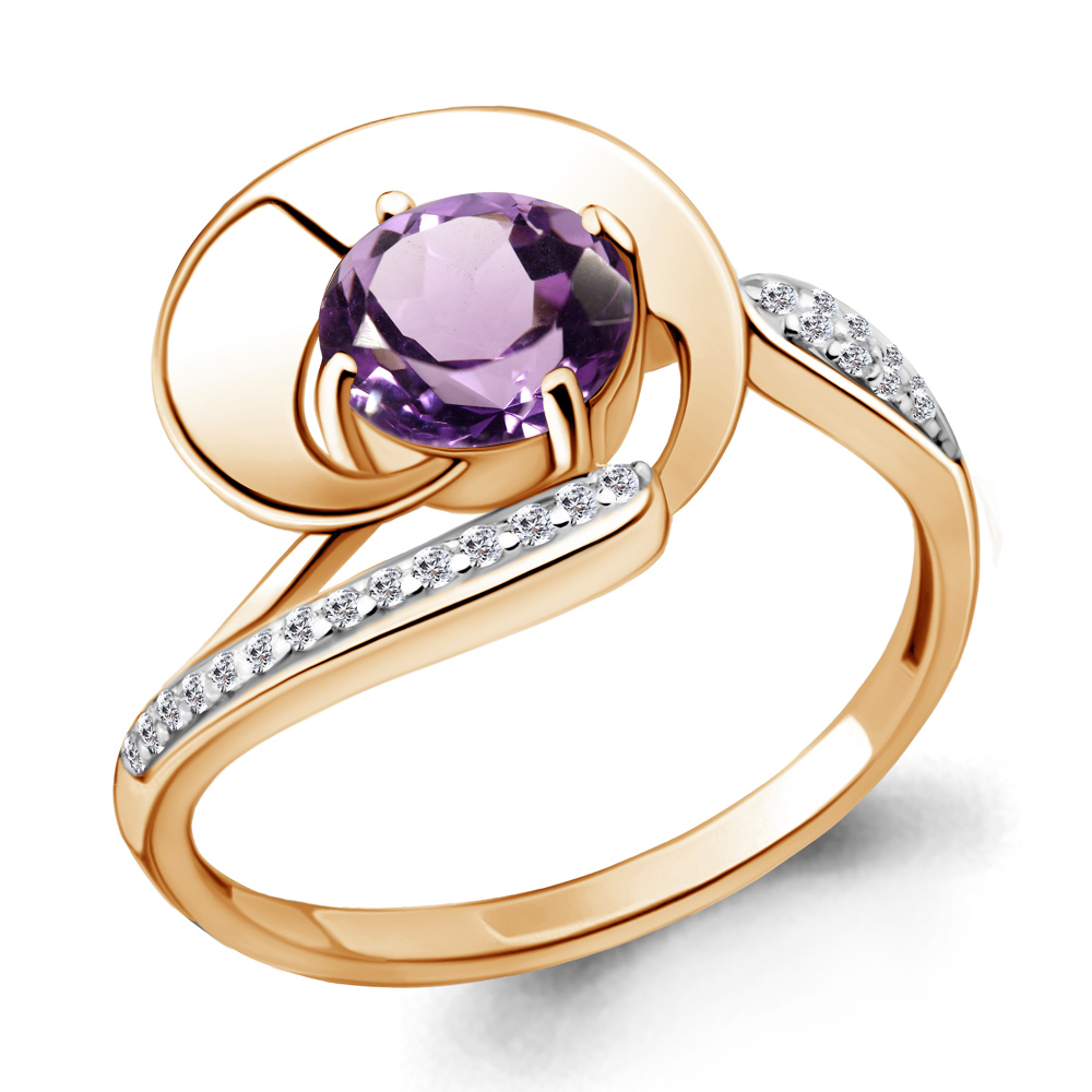 6587704А Кольцо из Серебра с аметистом, фианитами