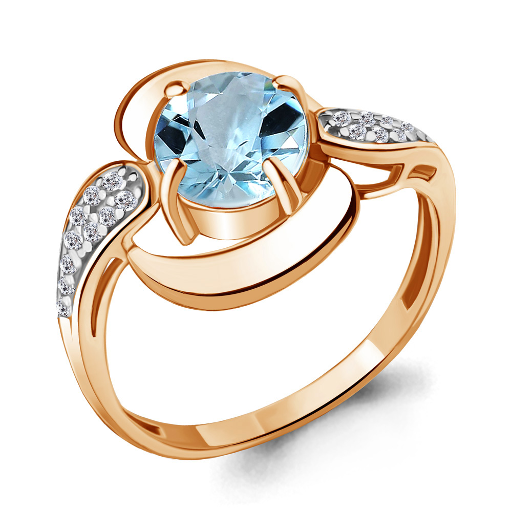 6588002А Кольцо из Серебра с топазом скай блю, фианитами