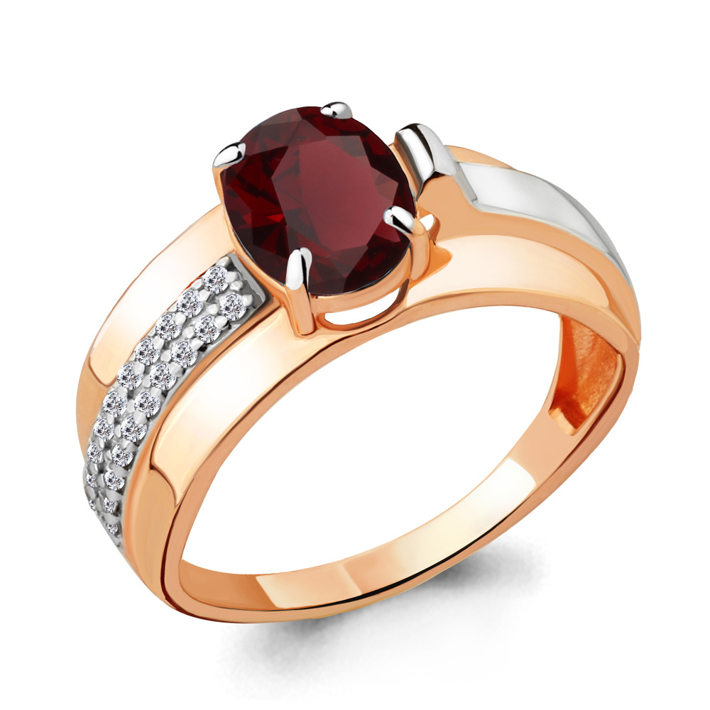 6593303А Кольцо из Серебра с гранатом, фианитами из коллекции "Maxima"