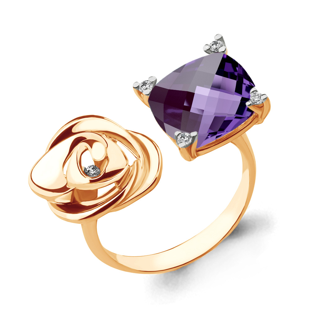6593884 Кольцо из Серебра с наноаметистом иск., фианитами
