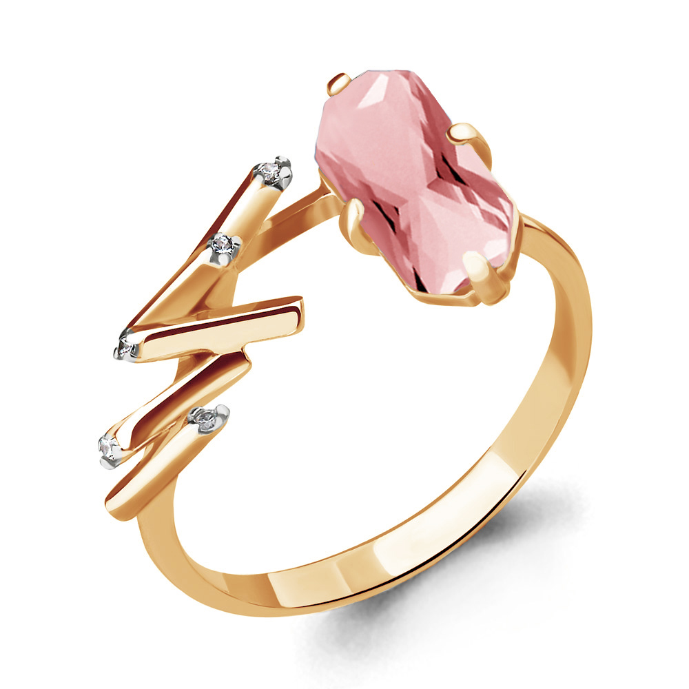 6594790 Кольцо из Серебра с наноморганитом, фианитами из коллекции "Каприз"