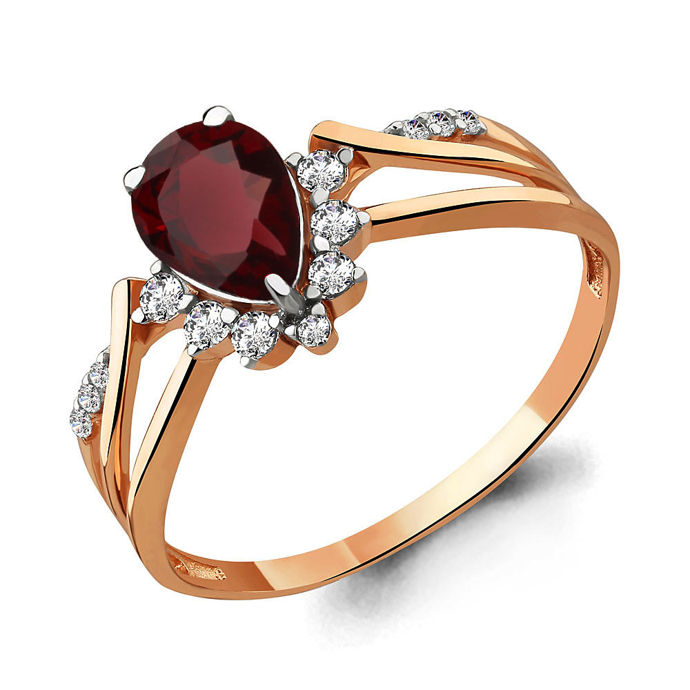 6596903А Кольцо из Серебра с гранатом, фианитами из коллекции "Belle"