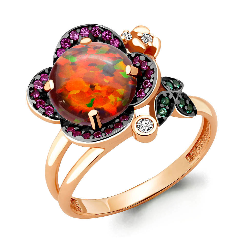 6598887ВГ Кольцо из Серебра с наноизумрудами, нанотурмалинами, опалом иск., фианитами из коллекции "Флёр"