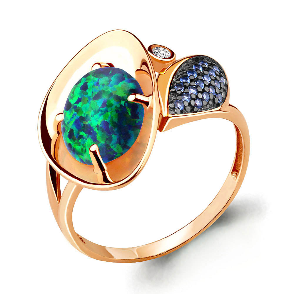 6599396Б Кольцо из Серебра с наносапфирами, опалом иск., фианитом из коллекции "Флёр"