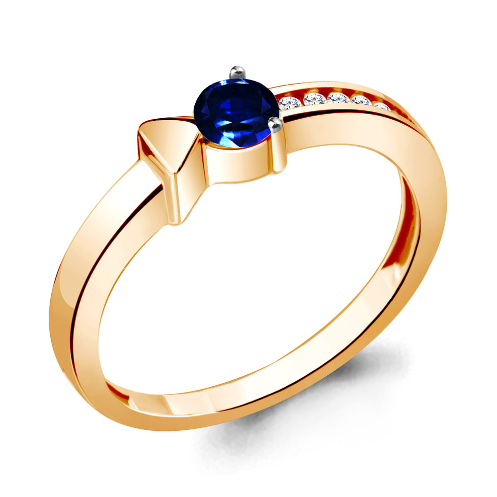 66648АБ Кольцо из Серебра с наносапфиром, фианитами из коллекции "Route"