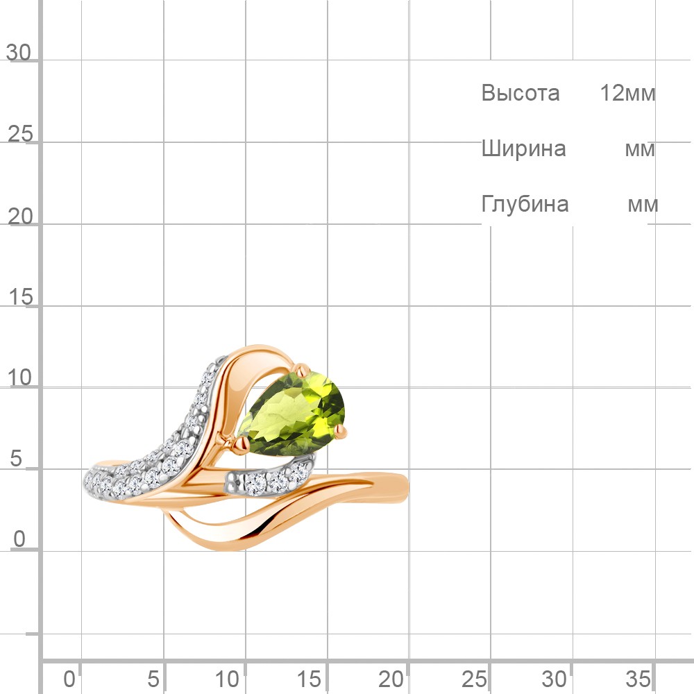 6692607А Кольцо из Серебра с фианитами, хризолитом