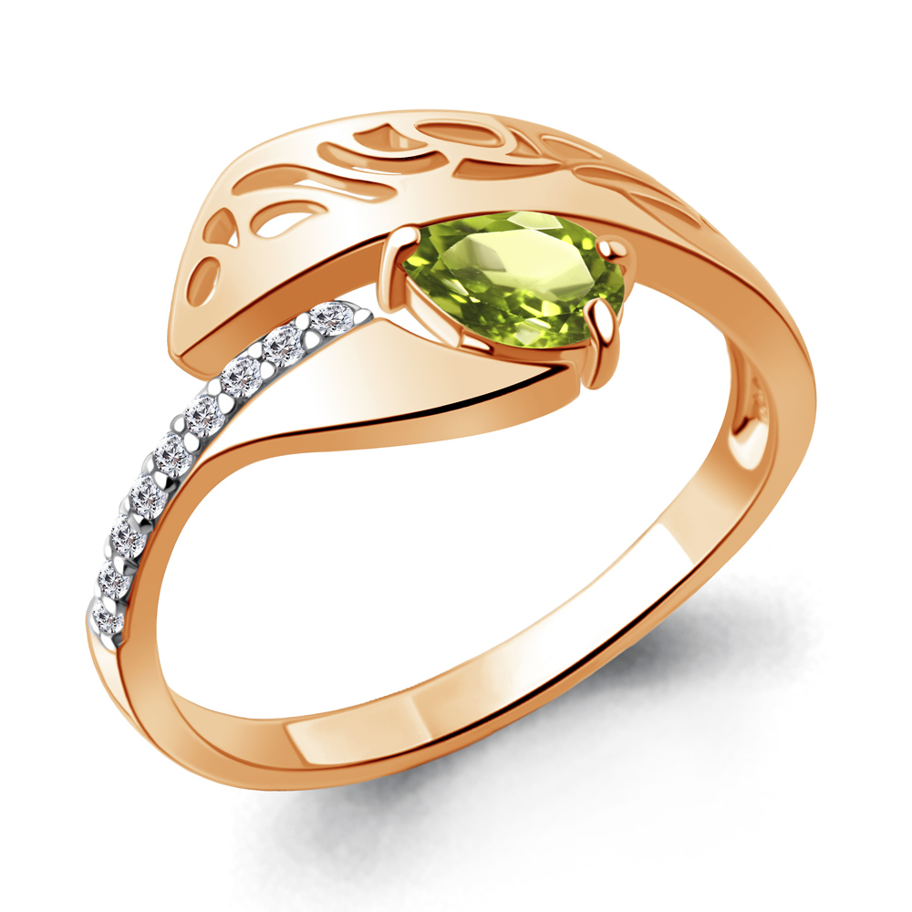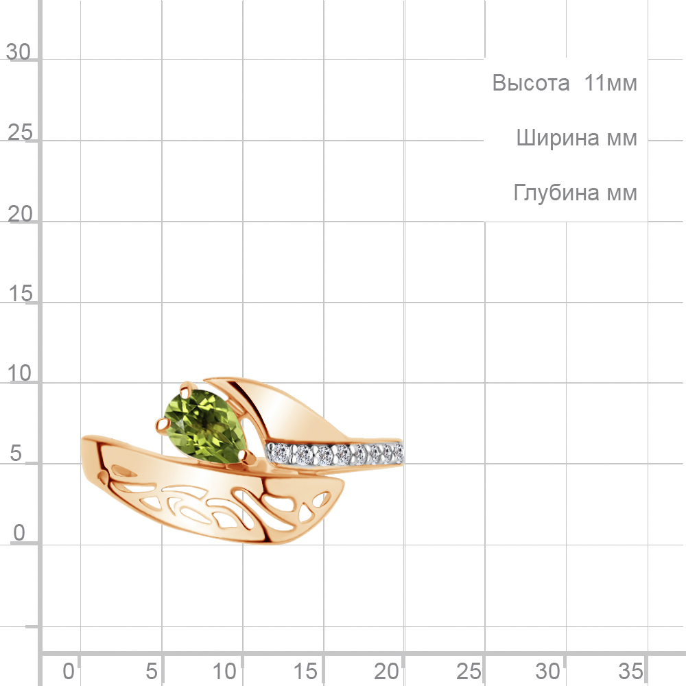 6692807А Кольцо из Серебра с фианитами, хризолитом