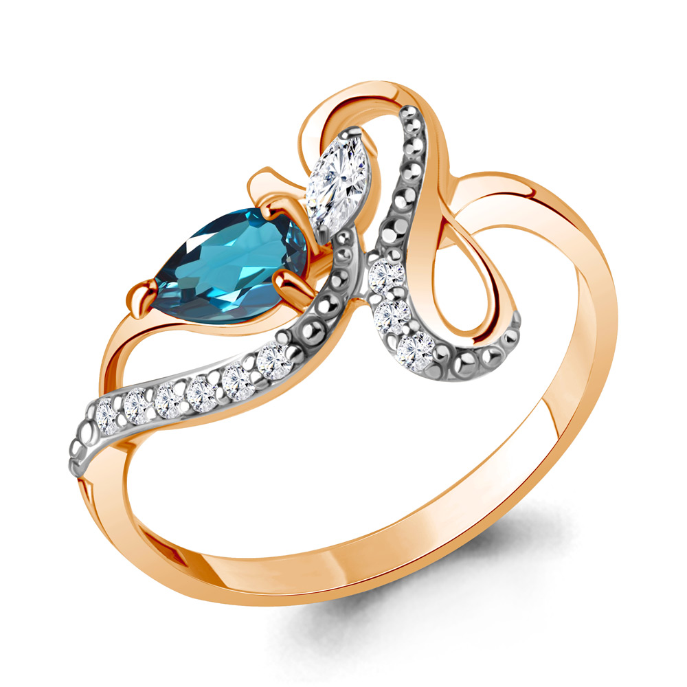6693208А Кольцо из Серебра с топазом лондон блю, фианитами