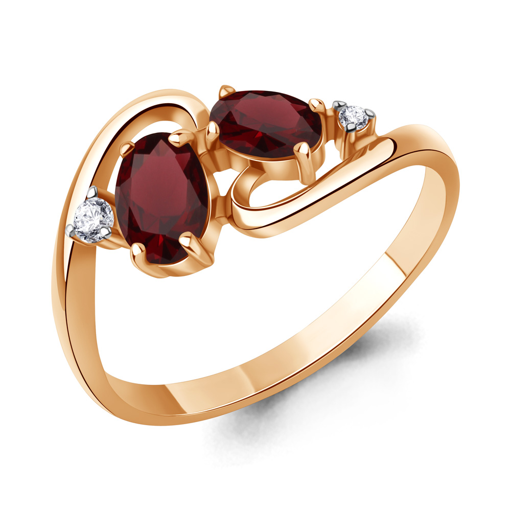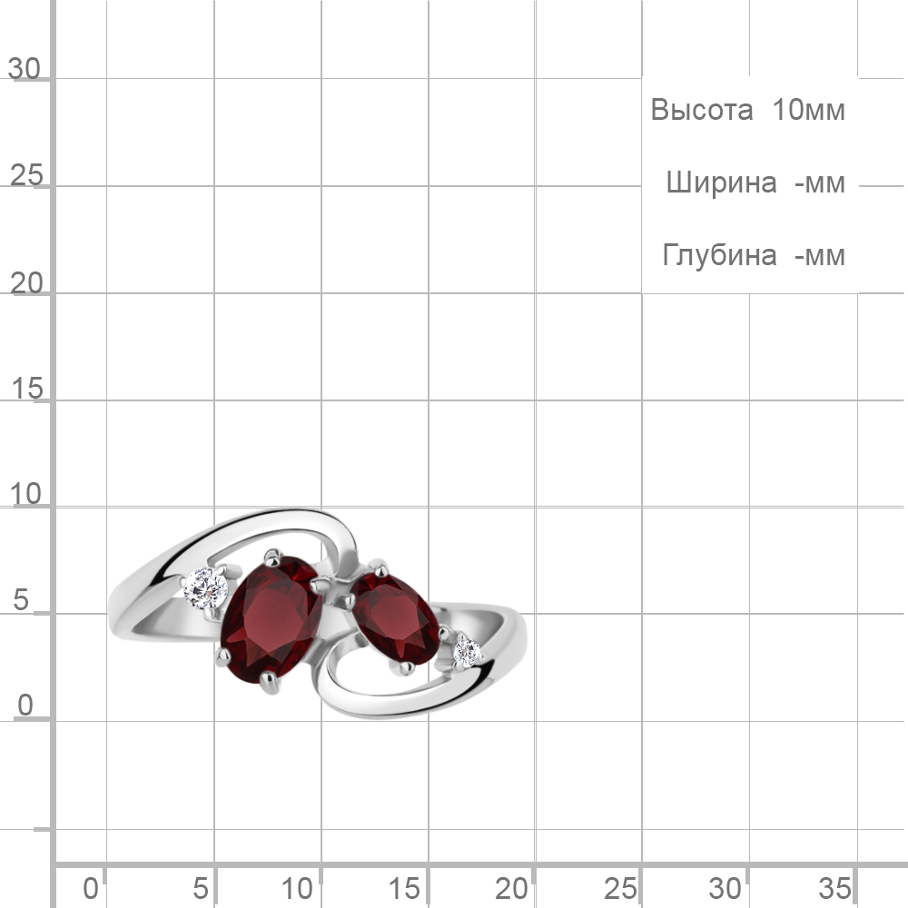 6693503А Кольцо из Серебра с гранатами, фианитами
