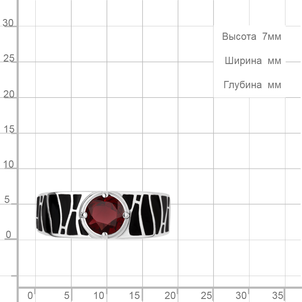 6695503 Кольцо из Серебра с гранатом, эмалью