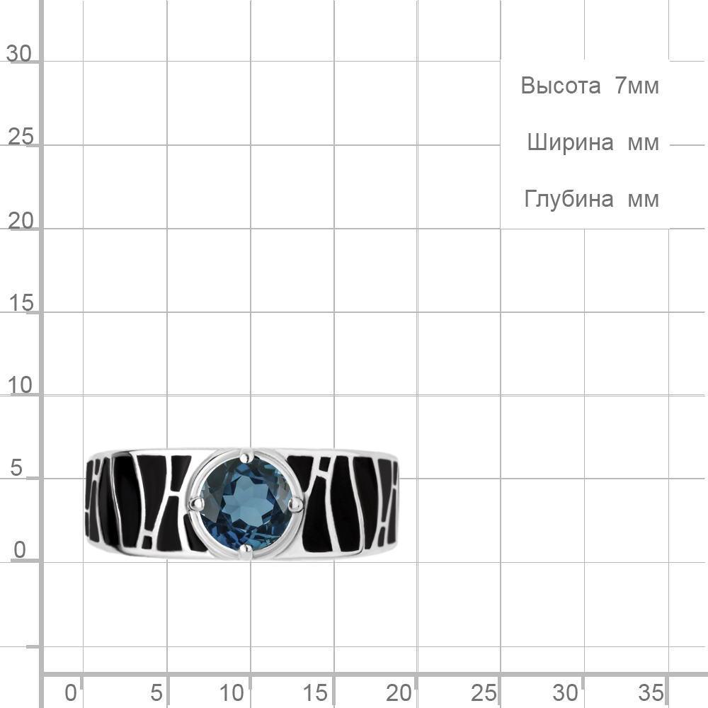 6695508 Кольцо из Серебра с топазом лондон блю, эмалью